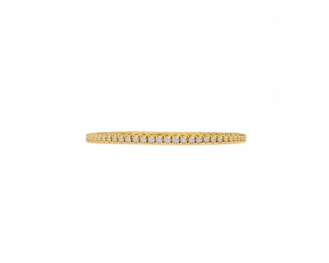 Our Slip-On Stretch Tennis reimagines the iconic tennis bracelet with modern ease. Crafted with a flexible, stretch-to-fit design, it glides seamlessly over the wrist-no clasp, no fuss-while maintaining the timeless brilliance of a traditional diamond line.Each stone is set with meticulous precision, creating a continuous shimmer that moves fluidly with you. Lightweight, comfortable, and beautifully wearable, this bracelet brings effortless luxury to your everyday look.