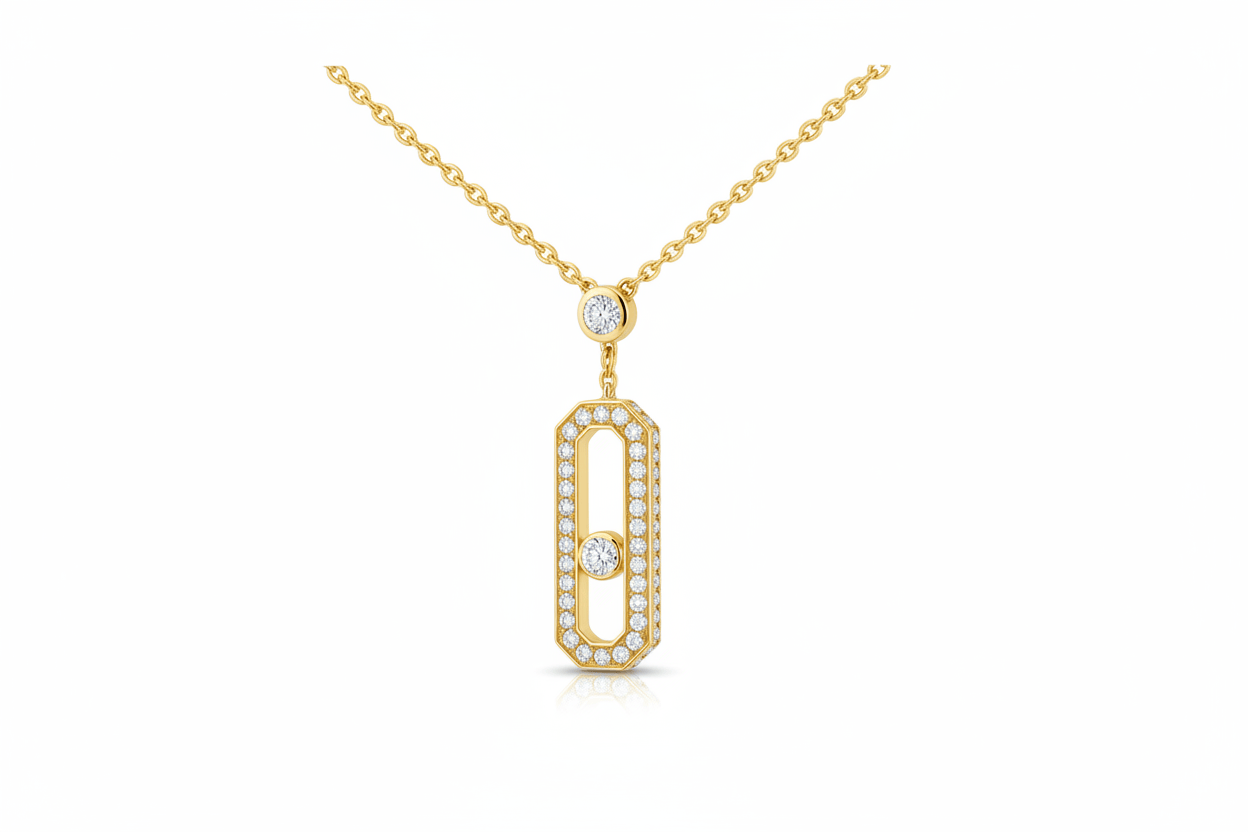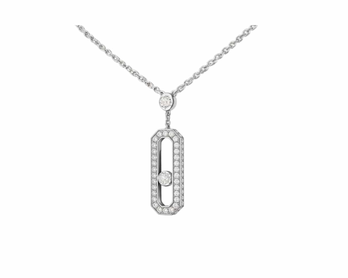 A bold expression of modern elegance, the Diamond Pavé Drop Icon Necklace elevates the signature icon design with exceptional brilliance and refined detail. Crafted in polished white gold, the elongated silhouette is framed with a halo of pavé-set diamonds, enhancing its radiance from every angle.